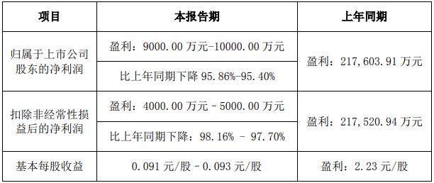 益生股份1月30日發(fā)布2020年度業(yè)績預(yù)告,報(bào)告期內(nèi)歸屬于上市公司股東的凈利潤9000.00萬元-10000.00萬元,比上年同期下降95.4%-95.86%;基本每股收益0.091元/股–0.093元/股。