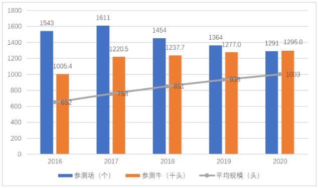 圖8 2020年不同泌乳牛規(guī)模場參測情況