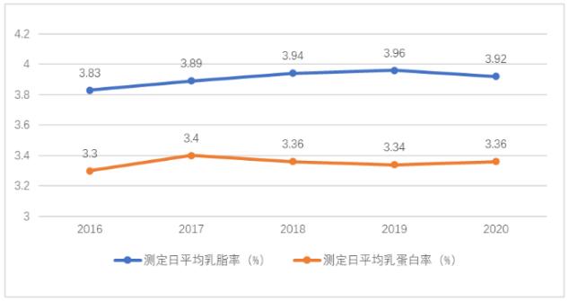 圖3 2016-2020年測定日平均乳脂率和乳蛋白率