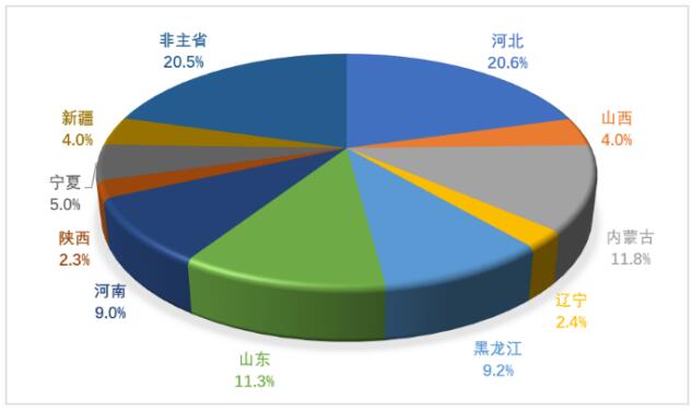 奶業(yè)主產(chǎn)?。ê颖?、山西、內(nèi)蒙古、遼寧、黑龍江、山東、河南、陜西、寧夏、新疆)2020年參測牛數(shù)102.98萬頭,占全國總參測量的79.5%。