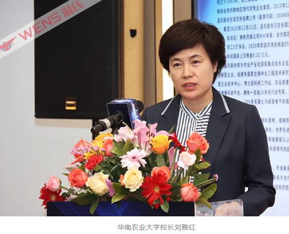 在華農(nóng)溫氏科技創(chuàng)新中心揭牌儀式上,劉雅紅對華農(nóng)溫氏科技創(chuàng)新中心的揭牌成立表示祝賀。劉雅紅指出,雙方合作共建科創(chuàng)中心是溫氏走進華南農(nóng)業(yè)大學的新起點,它將進一步提升華南農(nóng)業(yè)大學與溫氏股份校企合作模式內(nèi)涵,打造華南農(nóng)業(yè)大學和溫氏股份“校企產(chǎn)學研合作升級版”。