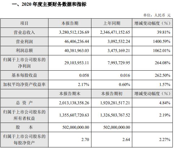 得利斯4月15日公布2020年度業(yè)績(jī)快報(bào)。報(bào)告期內(nèi),公司實(shí)現(xiàn)營(yíng)業(yè)總收入328,051.21萬(wàn)元,比上年同期增長(zhǎng)39.81%;實(shí)現(xiàn)營(yíng)業(yè)利潤(rùn)4,640.62萬(wàn)元,比上年同期增長(zhǎng)1,400.59%;實(shí)現(xiàn)利潤(rùn)總額4,038.20萬(wàn)元,比上年同期增長(zhǎng)1,062.01%;實(shí)現(xiàn)歸屬于上市公司股東的凈利潤(rùn)2,910.40萬(wàn)元,比上年同期增長(zhǎng)264.08%。