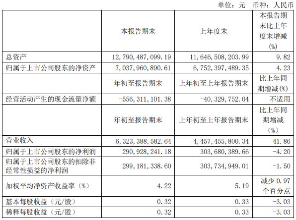 禾豐股份4月22日公布2021 年第一季度報告。2021年第一季度營收約63.23億元,同比增長41.86%;凈利潤約2.91億元,同比下降4.20%;基本每股收益0.32元,同比下降3.03%。
