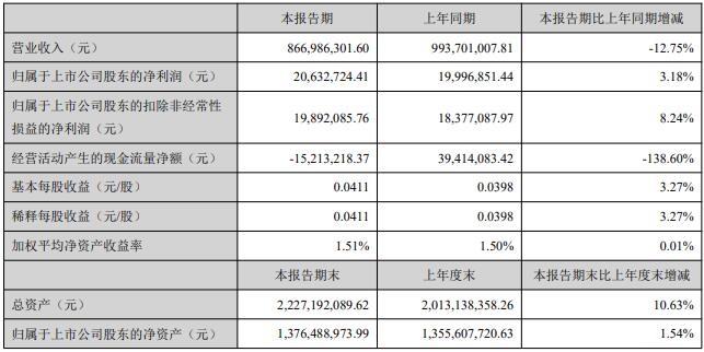 得利斯4月28日發(fā)布一季度業(yè)績公告。2021年第一季度營收約8.67億元,同比下降12.75%;凈利潤約2063萬元,同比增長3.18%;基本每股收益0.0411元,同比增長3.27%。