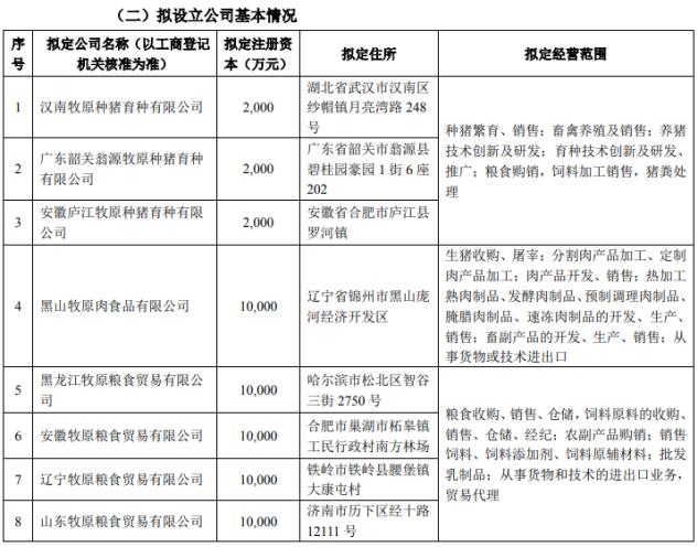 公司子公司牧原肉食品有限公司在遼寧省錦州市黑山縣設(shè)立子公司開展生豬屠宰業(yè)務(wù)是根據(jù)行業(yè)形勢的變化以及公司長遠(yuǎn)發(fā)展規(guī)劃的考慮,是公司由養(yǎng)殖環(huán)節(jié)向下游發(fā)展的重要舉措,將對公司未來發(fā)展有重要且積極的意義,有利于公司實(shí)施戰(zhàn)略發(fā)展規(guī)劃。公司子公司河南牧原糧食貿(mào)易有限公司在黑龍江省哈爾濱市松北區(qū)、安徽省巢湖市、遼寧省鐵嶺市鐵嶺縣、山東省濟(jì)南市歷下區(qū)設(shè)立子公司開展糧食貿(mào)易業(yè)務(wù),有利于整合全球優(yōu)質(zhì)優(yōu)價原料,優(yōu)化原糧供應(yīng)結(jié)構(gòu)。