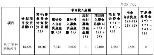 截至2020年12月3日,華峰種豬場項(xiàng)目已經(jīng)建設(shè)完成,達(dá)到預(yù)定可使用狀態(tài),公司決定對該項(xiàng)目進(jìn)行結(jié)項(xiàng),具體情況如下: