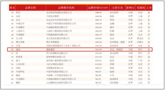 一年來,通威品牌價值快速攀升,大幅增長412.91億元,增幅達41.18%,并連續(xù)第18年榮列這一國際公信力和認同度最高、權(quán)威性和參鑒性最強的中國品牌國家隊。