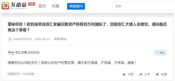 雙匯發(fā)展6月23日在回復(fù)投資者提問時表示,目前公司生產(chǎn)經(jīng)營正常,請大家不造謠、不信謠、不傳謠。