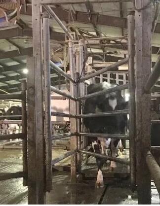 設(shè)專(zhuān)人負(fù)責(zé)奶牛蹄部保健,每天專(zhuān)人蹄部巡視。巡視分為兩種,一是專(zhuān)業(yè)人員每天上午5:30-10:30在奶牛上下轉(zhuǎn)盤(pán)處觀察,發(fā)現(xiàn)或懷疑問(wèn)題牛及時(shí)記錄并隔離檢查,準(zhǔn)備好紙筆、噴壺、藥浴液、剪刀,細(xì)心觀察轉(zhuǎn)盤(pán)上正在擠奶牛只的后蹄蹄冠處是否發(fā)紅,蹄叉處是否有蹄皮炎的一期癥狀(如發(fā)現(xiàn)有蹄皮炎的癥狀應(yīng)直接外用藥浴液噴灑并記錄),觀察有無(wú)變形蹄,兩后肢有無(wú)交替站立現(xiàn)象(如發(fā)現(xiàn)直接在相應(yīng)的控制面板輸入分群指令0091+閃電鍵),兩后肢的負(fù)重部位是否正常,蹄墊厚度是否一致,計(jì)步器綁帶是否合適,反芻是否正常。下轉(zhuǎn)盤(pán)處觀察行走評(píng)分,回舍后觀察站立肢蹄評(píng)分,如有2分以上的及時(shí)記錄檢查;二是趕牛工在趕牛到待擠廳和送牛回原舍的時(shí)候觀察問(wèn)題牛只,及時(shí)記錄在白板上并上報(bào)當(dāng)天值班的領(lǐng)導(dǎo)。