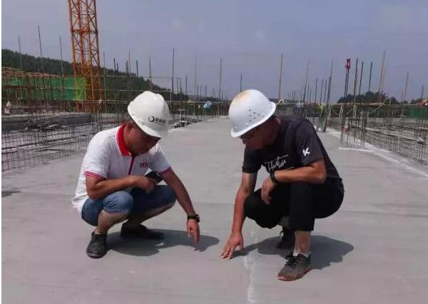早上第一批次為4:00~10:30,下午15:30~凌晨4:00,盡力避開最高氣溫時間,協(xié)調(diào)各個班組連軸運轉(zhuǎn),各種工序無縫連接,充分利用夜間施工,最終實現(xiàn)了7月底封頂?shù)募榷繕恕?br>