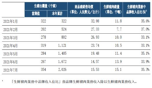 中糧家佳康8月9日公布7月運(yùn)營(yíng)快報(bào)。公司7月生豬出欄量35.4萬頭,本年累計(jì)生豬出欄量202.6萬頭;生鮮豬肉銷量15.1千噸,商品豬銷售均價(jià)人民幣15.53元/公斤,生鮮豬肉業(yè)務(wù)中品牌收入占比為35.3%。