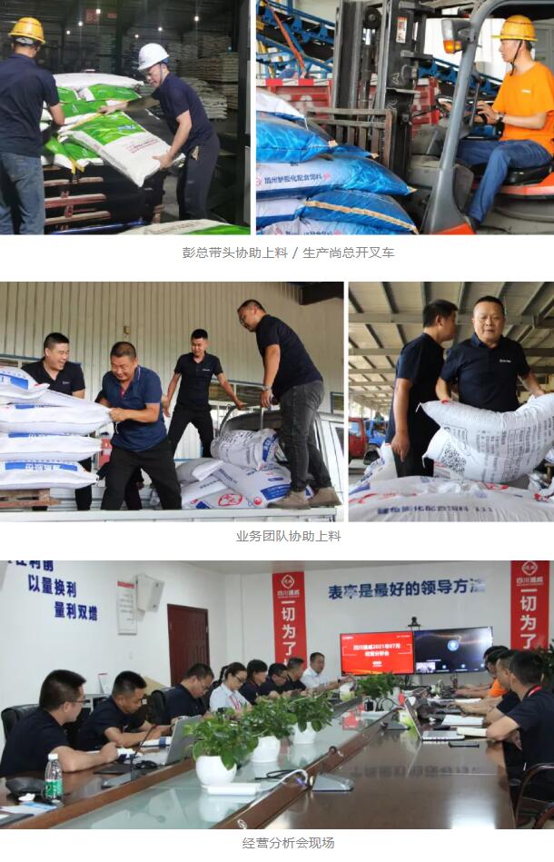 在片區(qū)成軍和總及公司彭金鋼總的正確引領(lǐng)和嚴(yán)格指導(dǎo)下,四川通威全員踏實(shí)做好基礎(chǔ)工作。市場(chǎng)上從根本上落地,堅(jiān)持落地才能走得更遠(yuǎn),銷量和基礎(chǔ)工作是相互匹配的。以用戶為中心核心、用數(shù)據(jù)化呈現(xiàn),出效果、推模式,瘋狂數(shù)據(jù)宣傳,塘頭會(huì)7步曲、動(dòng)保顯性實(shí)驗(yàn)等瘋狂會(huì)議營(yíng)銷。生產(chǎn)上全員齊心協(xié)力做好日常生產(chǎn)工作,保障產(chǎn)品質(zhì)量和出貨量,同時(shí),新增一個(gè)發(fā)貨窗口,提高裝車發(fā)貨效率。為了加快發(fā)貨速度,公司領(lǐng)導(dǎo)們帶頭前往庫(kù)發(fā),搬飼料、開叉車,做好后勤保障服務(wù),全員勠力同心全力服務(wù)好公司客戶,助力公司,不斷完成一個(gè)又一個(gè)的挑戰(zhàn)目標(biāo)。