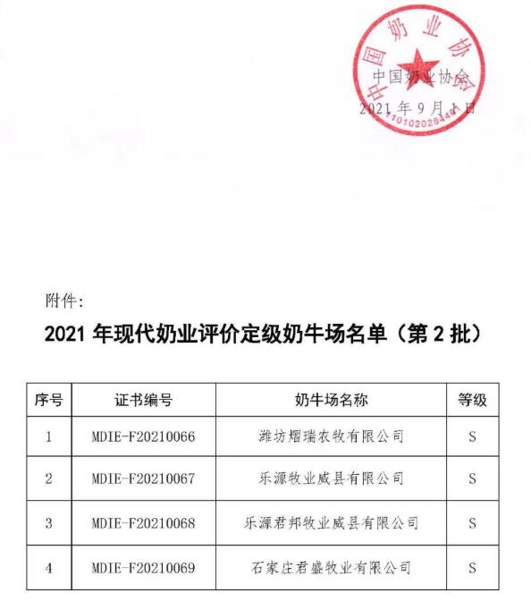 附件:2021年現(xiàn)代奶業(yè)評價定級奶牛場名單(第2批)