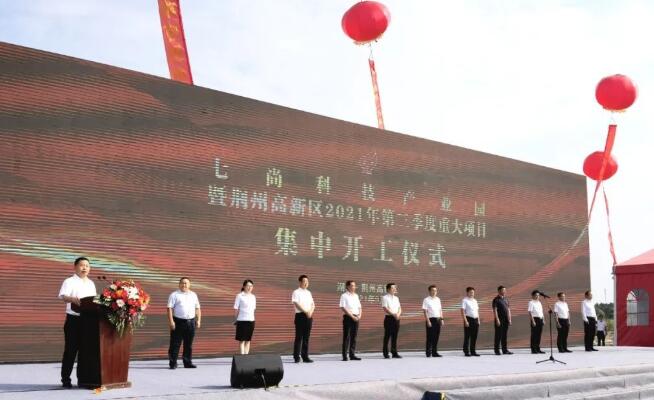 荊州市委常委、統(tǒng)戰(zhàn)部部長李水彬宣布七尚科技產(chǎn)業(yè)園暨荊州高新區(qū)2021年第三季度重大項目開工。