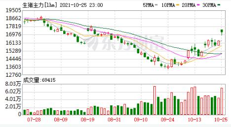 根據(jù)飼料行業(yè)信息網(wǎng)慧通數(shù)據(jù)研究部統(tǒng)計(jì)數(shù)據(jù)顯示,國(guó)慶假期的最后兩天開(kāi)始豬價(jià)出現(xiàn)了瘋漲行情,從10月5日的10.88元/公斤一口氣就沖到了16元/公斤,尤其是最近兩天漲幅特別明顯,上周日日均漲幅達(dá)1元/公斤左右。而生豬期貨市場(chǎng)的反應(yīng)要早于現(xiàn)貨市場(chǎng),從9月24日開(kāi)始,生豬期貨市場(chǎng)就出現(xiàn)上漲行情。從上圖生豬2201主力合約的走勢(shì)我們就可以看出,且在10月11日多個(gè)生豬期貨合約出現(xiàn)2021年1月上市以來(lái)的首次漲停,在10月25日早盤(pán)再度出現(xiàn)漲停,同時(shí)大部分上市養(yǎng)殖企業(yè)雖三季度預(yù)報(bào)大幅虧損,但最近的股價(jià)也隨豬價(jià)反彈上漲。
