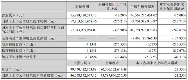 溫氏股份10月28日公布2021年第三季度報告。公司第三季度實現(xiàn)營業(yè)收入159.39億元,同比下降18.20%;凈利潤虧損72.04億元,同比下降276.21%。前三季度實現(xiàn)營業(yè)收入465.69億元,同比下降16.00%;凈利虧損97.01億元,同比下降217.71%。