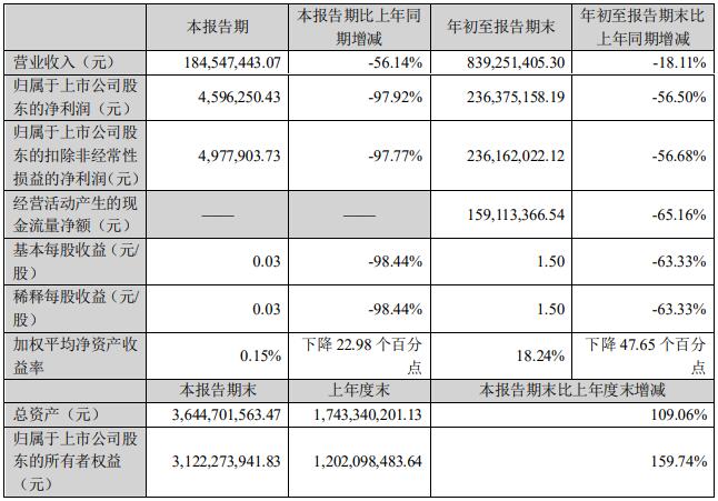東瑞股份10月28日公布2021年第三季度報(bào)告。公司第三季度公司實(shí)現(xiàn)營(yíng)業(yè)收入1.85億元,同比下降56.14%;實(shí)現(xiàn)歸屬于上市公司股東的凈利潤(rùn)約460萬(wàn)元,同比下降97.92%。前三季度公司實(shí)現(xiàn)營(yíng)業(yè)收入8.39億元,同比下降18.11%;實(shí)現(xiàn)歸屬于上市公司股東的凈利潤(rùn)2.36億元,同比下降56.50%。