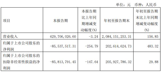 巨星農(nóng)牧10月30日發(fā)布三季度業(yè)績公告。公司第三季度公司實現(xiàn)營業(yè)收入約6.30億元,同比下降3.24%;實現(xiàn)歸屬于上市公司股東的凈利潤約-8554萬元,同比下降254.79%。公司前三季度實現(xiàn)營業(yè)總收入20.84億,同比增長156.85%;實現(xiàn)歸母凈利潤2.03億,同比增長483.32%。