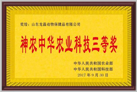 山東龍昌動物保健品有限公司與青島農(nóng)業(yè)大學(xué)、山東新希望六和集團(tuán)有限公司等單位和企業(yè)產(chǎn)學(xué)研合作的項目——《肉雞健康高效養(yǎng)殖關(guān)鍵技術(shù)與應(yīng)用》被授予神農(nóng)獎科學(xué)研究類成果二等獎!