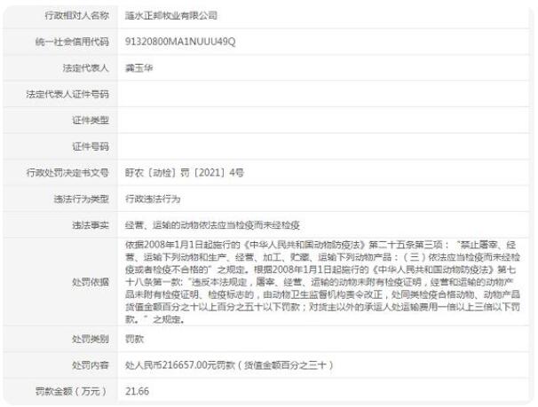 盱眙縣農(nóng)業(yè)農(nóng)村局處罰決定日期為2021年10月15日。