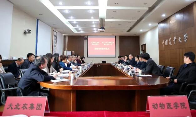 11月18日上午,中國農(nóng)業(yè)大學(xué)動(dòng)物醫(yī)學(xué)院-大北農(nóng)集團(tuán)合作發(fā)展座談會(huì)暨戰(zhàn)略合作協(xié)議簽約儀式在中國農(nóng)業(yè)大學(xué)西校區(qū)主樓隆重舉行。