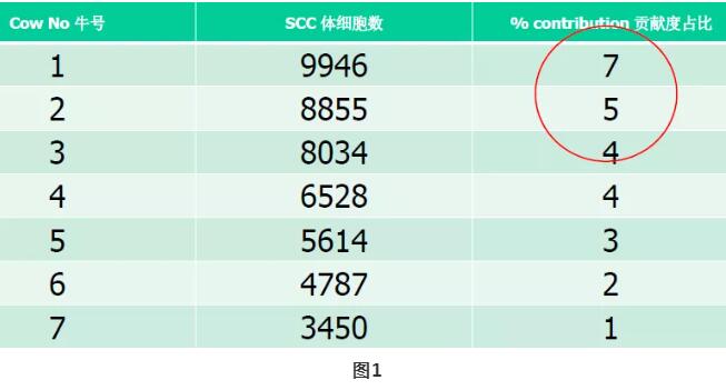 第一,哪些母牛大罐奶體細(xì)胞貢獻(xiàn)度最高,必須取樣。因?yàn)檫@些母牛將整個(gè)畜群體細(xì)胞數(shù)推高。