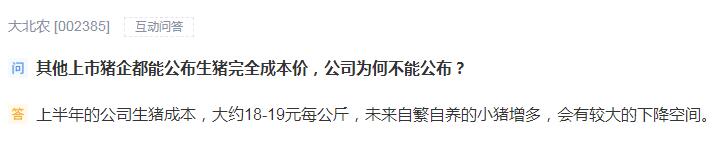 大北農(nóng):上半年的公司生豬成本大約18-19元每公斤