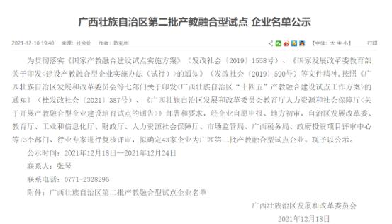 12月18日,廣西壯族自治區(qū)發(fā)展和改革委員會等多部門印發(fā)通知,公布第二批廣西產(chǎn)教融合型試點企業(yè)名單,廣西揚翔股份有限公司(以下簡稱“揚翔”)入選。