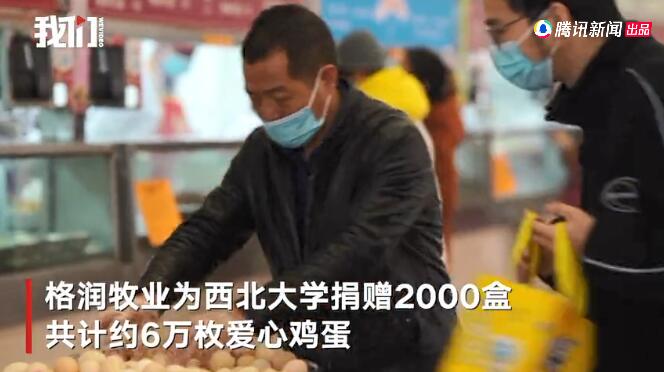 1月5日,陜西西北大學(xué)收到格潤牧業(yè)捐贈的2000盒共約6萬枚愛心雞蛋,每枚雞蛋上都印有“護(hù)家園,共長安”。午餐時段學(xué)校在食堂設(shè)置供給點,為2萬余名學(xué)生提供煮雞蛋,每名學(xué)生可免費領(lǐng)一枚,活動將持續(xù)至雞蛋發(fā)放完畢。