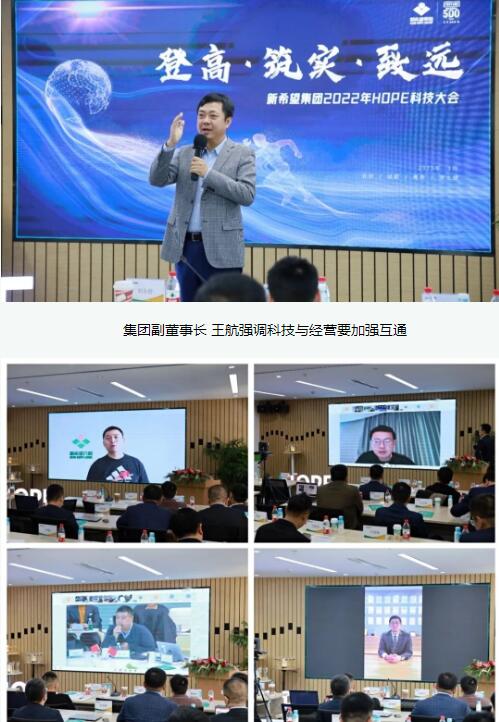 1月6日,新希望集團(tuán)召開2022年HOPE科技大會。本次會議首次采用“1線3地N節(jié)點(diǎn)”、“大線上、小線下”的方式進(jìn)行,以北京為主會場,成都、青島為分會場。新希望集團(tuán)董事長劉永好,新希望六和董事長劉暢,新希望集團(tuán)副董事長王航,常務(wù)副總裁、首席運(yùn)營官李建雄等集團(tuán)領(lǐng)導(dǎo),各業(yè)務(wù)板塊、部門、合伙人公司、合作伙伴的領(lǐng)導(dǎo)和同事,以及年度科技評優(yōu)的獲獎人員、一線科技工作者代表近200人現(xiàn)場出席,其他線上直播參會員工共計6700多人次參與本次盛會。