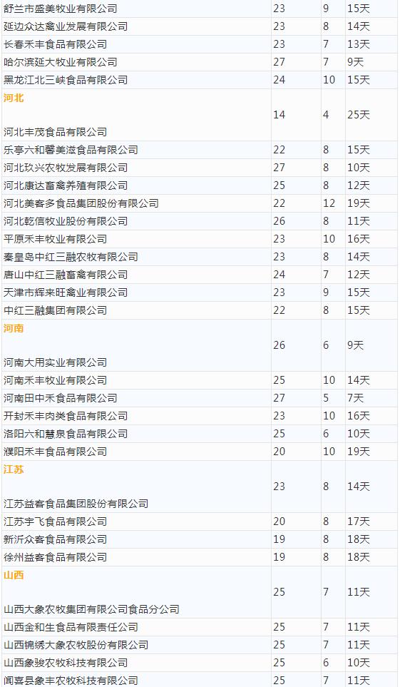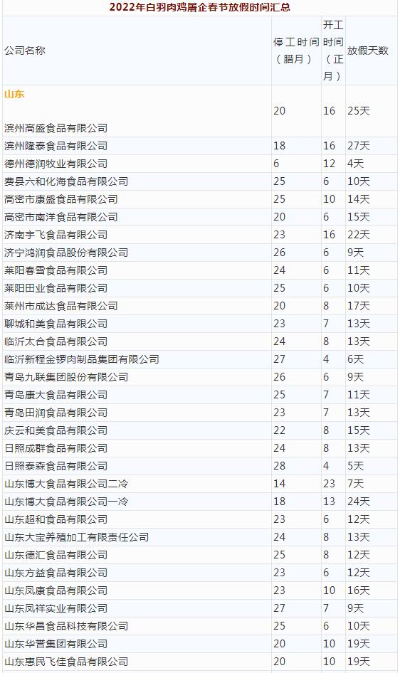 2022年全國147家白羽肉雞屠企春節(jié)放假時(shí)間匯總