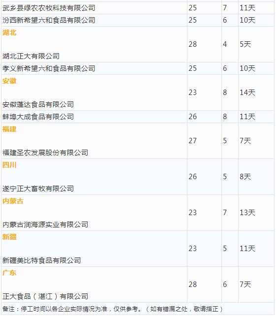 隨著春節(jié)即將到來,全國白羽肉雞屠宰企業(yè)已開始陸續(xù)放假,截止到今日小編匯總出各地147家大中小屠宰企業(yè)停工、開工以及放假天數(shù)。確保企業(yè)來年按時(shí)進(jìn)行業(yè)務(wù)往來。