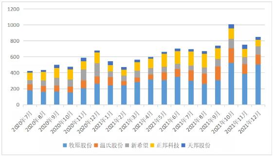 圖表:5大上市豬企月度出欄量(單位:萬頭)數據來源:上市公司公告,光大期貨研究所