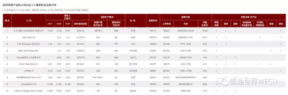 從目前全球范圍來看,主營業(yè)務(wù)涉及雞蛋的上市企業(yè)有20余家(不完全統(tǒng)計)。其中,主營業(yè)務(wù)的核心產(chǎn)品為食用雞蛋/蛋制品的上市企業(yè)有10家,主營業(yè)務(wù)的核心產(chǎn)品涉及飼料、種蛋/雞苗、雞蛋/蛋制品、雞肉的上市企業(yè)有8家,主營業(yè)務(wù)的核心產(chǎn)品涉及蛋用型種蛋/雞苗的上市企業(yè)有2家。