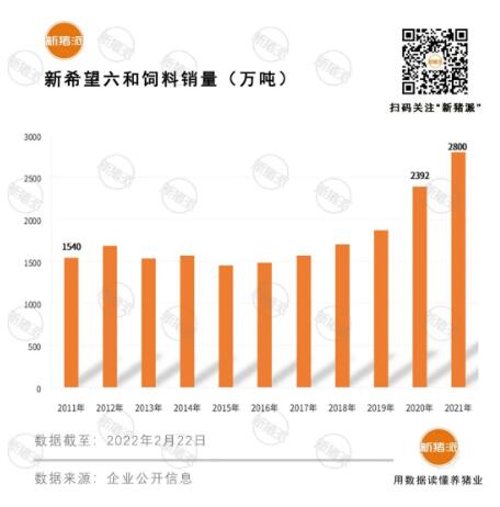 2011年,山東六和資產(chǎn)正式注入新希望六和,在新希望六和飼料發(fā)展史上留下了重要一筆。同年,在六和集團(tuán)及自身發(fā)展加持下,新希望六和飼料銷量躍居全國第一,并持續(xù)霸榜至今,2021年登頂全球第一。