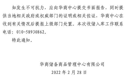 華儲(chǔ)網(wǎng):2022年第一輪第2次中央儲(chǔ)備凍豬肉收儲(chǔ)競價(jià)交易2.06萬噸