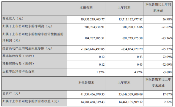 海大集團(tuán)4月12日發(fā)布2022年一季報(bào)。公司2022年1-3月實(shí)現(xiàn)營業(yè)收入199.53億元,同比增長26.98%,歸屬于上市公司股東的凈利潤為2.01億元,同比下降71.62%。