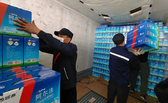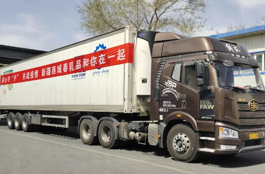 4月10日上午,新疆西域春乳業(yè)有限責(zé)任公司二期車間裝車臺(tái)一片忙碌,四輛叉車不停穿梭在庫(kù)房和貨車之間,工人們?cè)谲囅鋬?nèi)將一件件酸奶擺放整齊,裝運(yùn)完成后,物資車將日夜不停地趕往上海,及時(shí)將物資運(yùn)送到位。據(jù)了解,此次西域春乳業(yè)捐贈(zèng)的是阿爾法濃縮酸奶,富含高蛋白質(zhì)及活性益生菌。