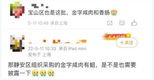 中新經(jīng)緯注意到,近日,有部分上海網(wǎng)友在微博上爆料,疑似上海靜安區(qū)、寶山區(qū)組織采購的金字咸肉出現(xiàn)了質(zhì)量問題。