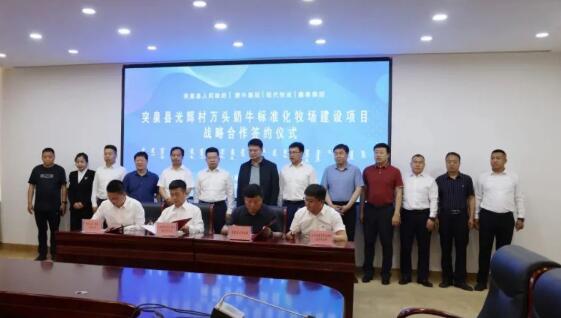 隨后四方舉行項(xiàng)目戰(zhàn)略合作簽約儀式,標(biāo)志突泉縣萬頭奶牛標(biāo)準(zhǔn)化牧場(chǎng)建設(shè)項(xiàng)目正式啟動(dòng)。