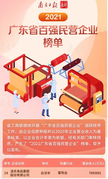 據(jù)悉,該榜單由廣東省工商聯(lián)開(kāi)展調(diào)研排序工作,由企業(yè)自愿申報(bào)并以2020年企業(yè)營(yíng)業(yè)收入為基本標(biāo)準(zhǔn),以企業(yè)會(huì)計(jì)年表為依據(jù),并經(jīng)有關(guān)部門(mén)審核排序。