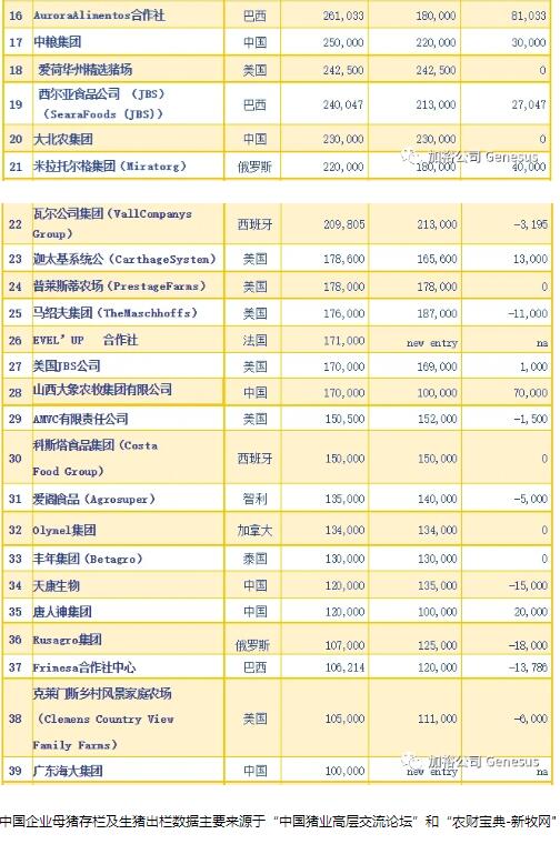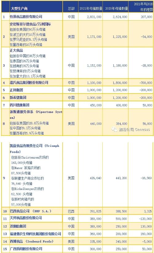 總的來說,加裕公布的2022年世界大型生產(chǎn)商榜單上超過10萬頭母豬的生產(chǎn)商與2021年相比變化不大。主要的區(qū)別是增加了四家擁有超過10萬頭母豬的新公司。