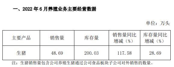 傲農(nóng)生物7月2日公布2022年6月養(yǎng)殖業(yè)務(wù)主要經(jīng)營(yíng)數(shù)據(jù)公告。