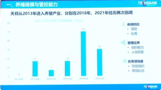 據(jù)悉,與2020年相比,天邦食品2021年項(xiàng)目數(shù)量增加275%,員工數(shù)量增加235%,實(shí)現(xiàn)快速擴(kuò)張。但做大并不意味著做強(qiáng),2021年,天邦生產(chǎn)母豬規(guī)模減少約20萬頭,凈利潤為虧損44.62億元,相較2020年同期的盈利32.45億元大幅下降。