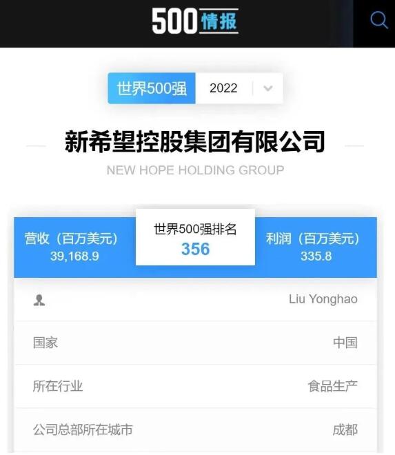 新希望控股集團去年首次進(jìn)入《財富》世界500強榜單,取得了390位的好名次,可以說是風(fēng)光無限。