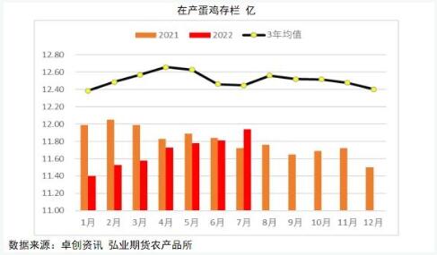 高開產(chǎn)和低淘汰使得在上月產(chǎn)蛋雞存欄向上態(tài)勢不變,根據(jù)卓創(chuàng)資訊,7月份全國在產(chǎn)蛋雞存欄11.94億羽,環(huán)比增1.1%,同比增1.89%;博亞和訊數(shù)據(jù)亦顯示在產(chǎn)商品代蛋雞存欄環(huán)比增5.34%,同比增13.06%,雞蛋產(chǎn)量環(huán)比增2.63%,同比增11.76%。