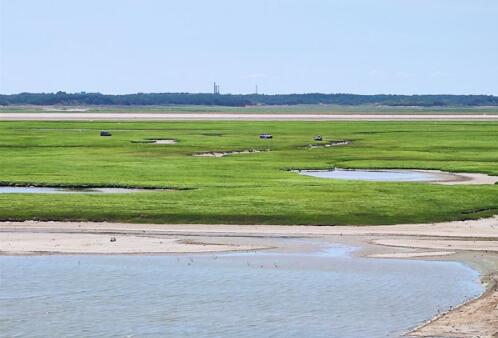 在岳陽(yáng)樓至扁山島之間,洞庭湖南岸露出的灘涂從數(shù)十米至百余米不等,灘涂上大部分已經(jīng)長(zhǎng)滿了青草。從扁山往上游方向,至臨港新村附近,洞庭湖南岸邊露出的灘涂區(qū)域逐漸擴(kuò)大,最寬處從堤岸至水域距離長(zhǎng)達(dá)數(shù)公里。