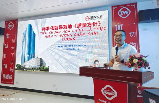 通威學(xué)習(xí)中心執(zhí)行副校長張紅纓與和平通威進(jìn)行了視頻連線,講話中提到:標(biāo)準(zhǔn)化是現(xiàn)場打造、人心再造、效率提升的一次重大變革,通過文化引領(lǐng)+智能標(biāo)準(zhǔn)化二者合力,不斷提升企業(yè)的核心競爭力。同時強(qiáng)調(diào)標(biāo)準(zhǔn)化工作貴在“堅持”,要求大家在建設(shè)工作中邊生產(chǎn)邊現(xiàn)場保持,標(biāo)準(zhǔn)化驗收只是一個起點,為進(jìn)一步打造二階段的經(jīng)營標(biāo)準(zhǔn)化打下堅實基礎(chǔ)。