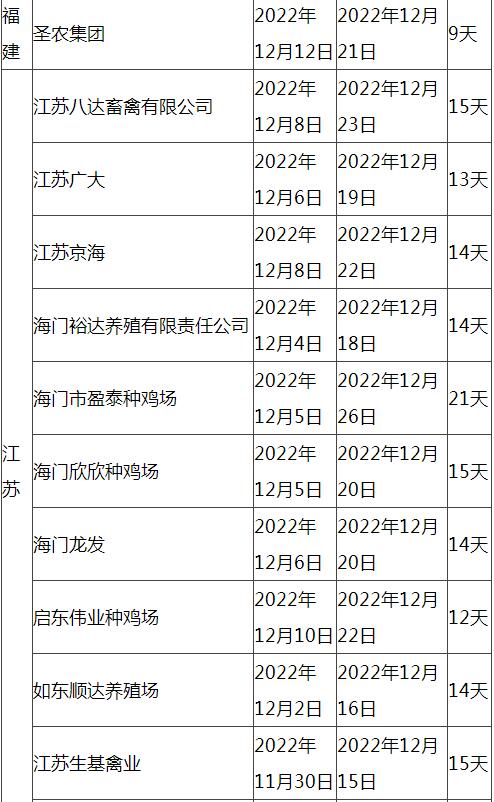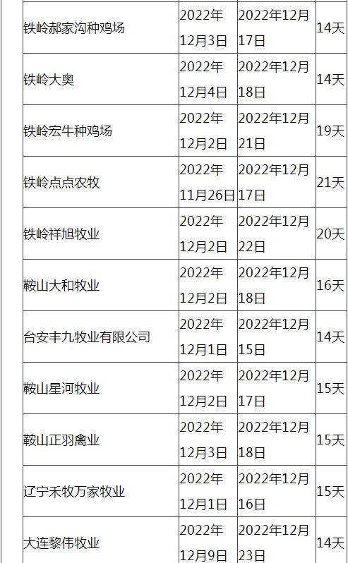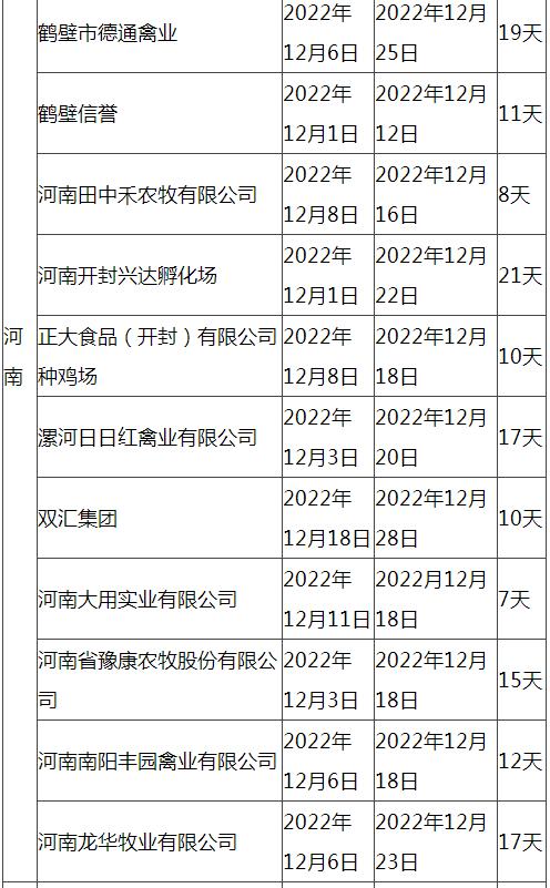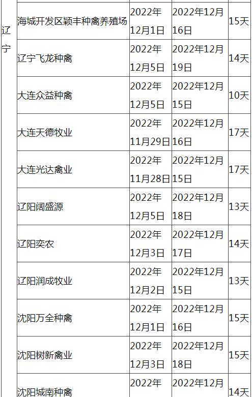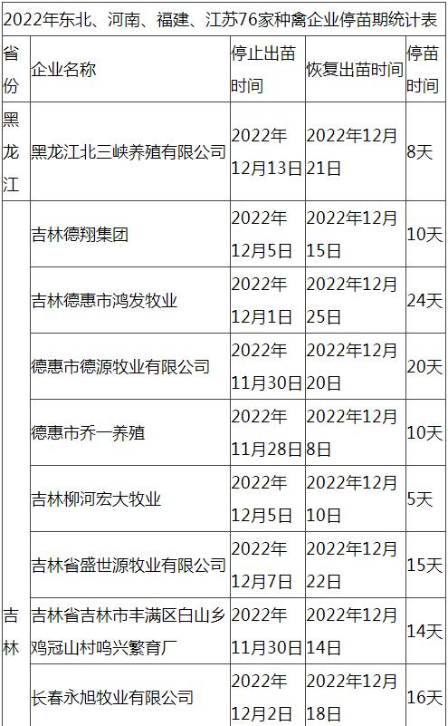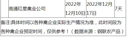根據市場調研情況顯示,本次停苗時間最長在20天左右,最短7天左右,主要集中在12月上旬進行停止出苗(即屠宰企業(yè)農歷臘月二十三左右停止宰殺),12月15日-20日進行恢復出苗(即屠宰企業(yè)農歷2023年正月初八左右春節(jié)過后開工)。