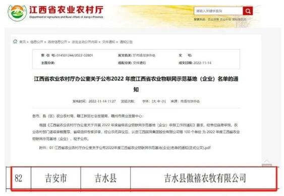 ??任重道遠(yuǎn),更需快馬加鞭。后續(xù),吉水傲禧將以入選江西省農(nóng)業(yè)物聯(lián)網(wǎng)示范基地為激勵,持續(xù)借助物聯(lián)網(wǎng)技術(shù),走可持續(xù)發(fā)展的智慧養(yǎng)殖道路,實(shí)現(xiàn)公司效益與生態(tài)效益“雙豐收”,為老百姓提供健康、安全、美味的傲農(nóng)豬肉。